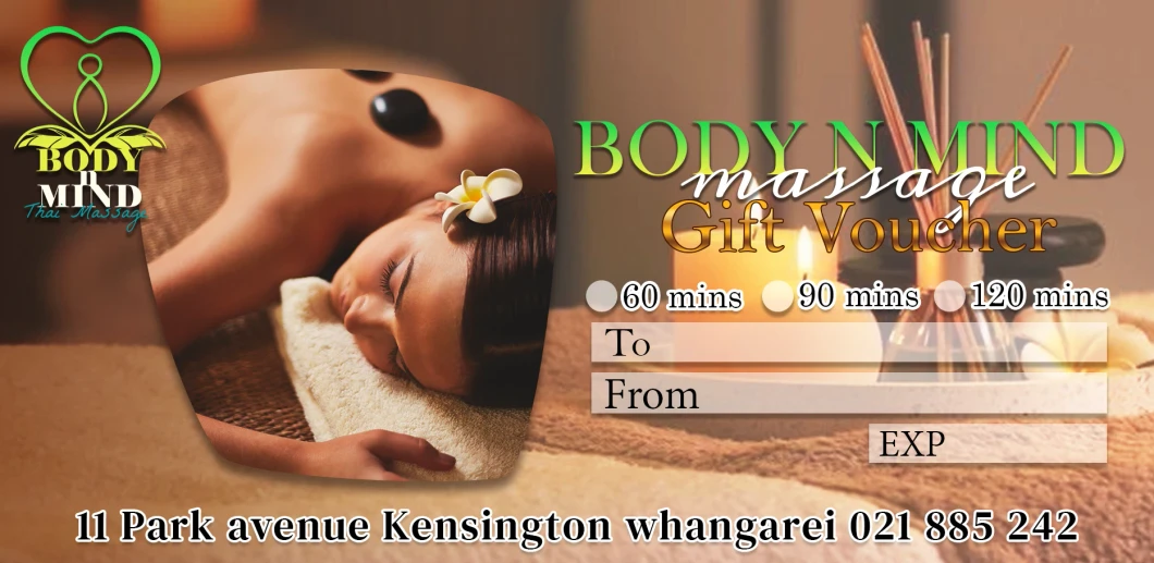 Body N Mind Massage provides personalised therapeutic and relaxing massage treatments from our calm studio on Park Avenue in Kensington, Whangārei. Each session is tailored to your body and condition, helping relieve pain, muscle tension, fatigue, pregnancy discomfort, and stress.